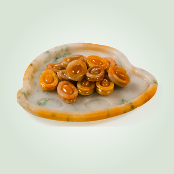 黄色的米袋和当中的白米,出自同一件原石,巧妙地表现了中华民族勤俭节约的美德。