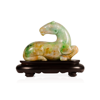 【唐三彩马】特意采用古代雕工,线条简洁有力,优美流畅。三彩—深绿、赤红、褐红—斑驳分布马身,古趣洋溢。马回盼的神情,轩昂自若,隐见骄健的体魂,显出泱泱大唐的气度。