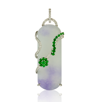 18K白色黄金钻石镶嵌天然翡翠